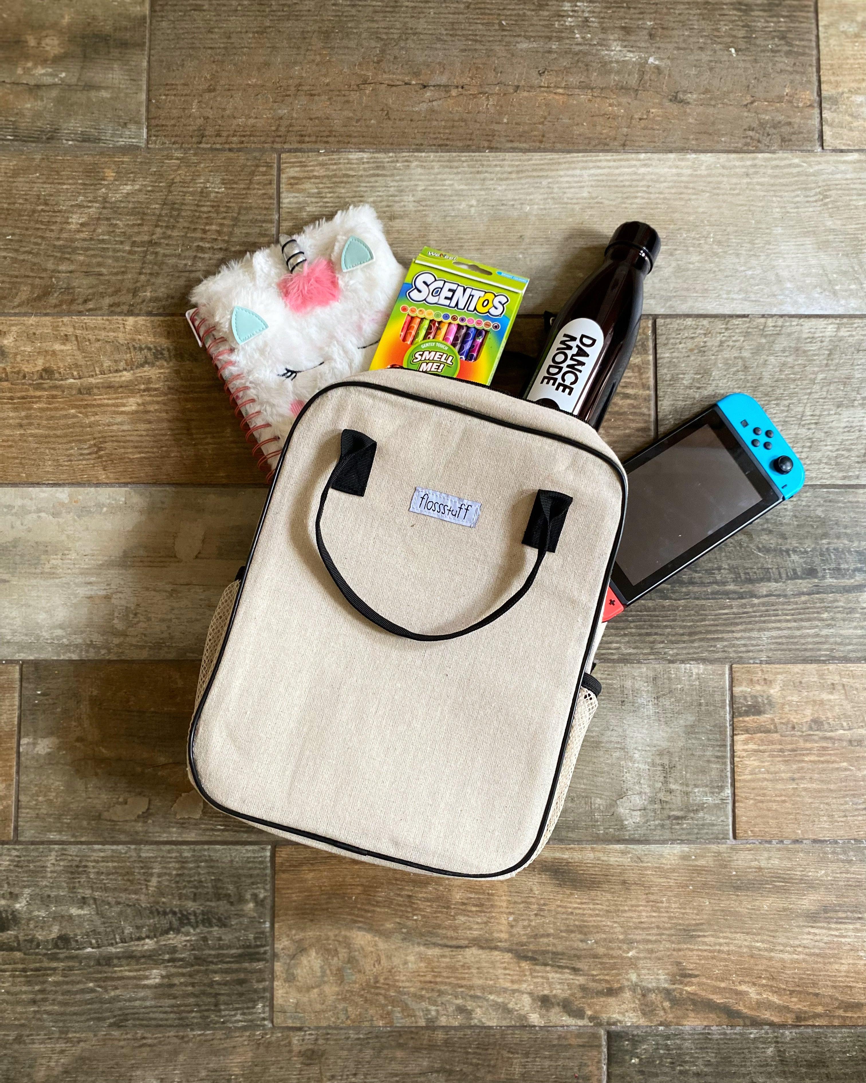 flossstuff is the fusion of two simple needs when looking for a backpack. Functionality and style. The PEVA lining makes it easy to wipe away those inevitable leaks and spillages on the bags interior, whilst also serving as a cold or hot insulating liner. Couple that, with the recycled raw linen finish, interior hang pocket and side bottle carriers, the flossstuff backpack is all you or your children need to get outdoors and take everything you need with you.